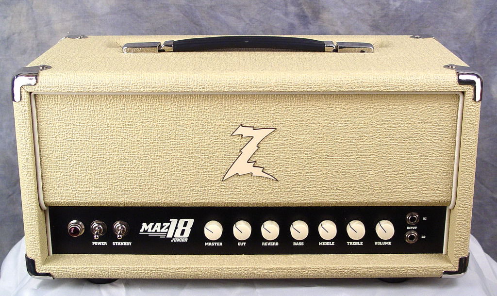 Dr Z Maz 18 Jr with reverb, upgraded to MKII status in 2018. This amp sounds tremendous through almost any speaker configuration and packs power beyond its 18 watt rating.