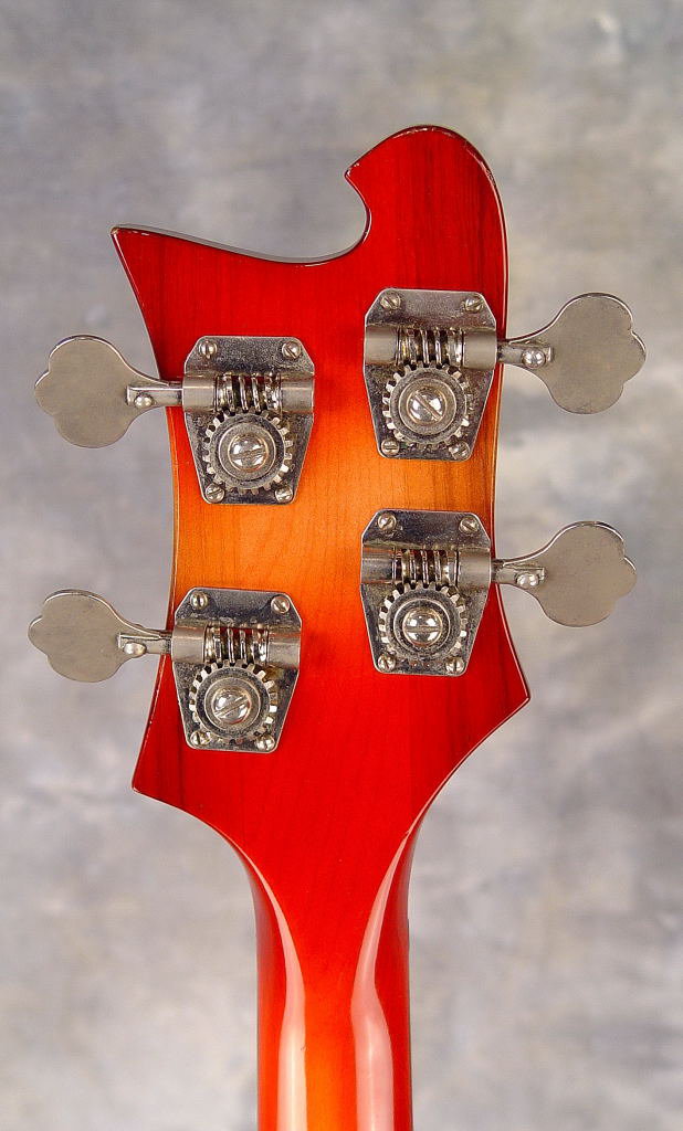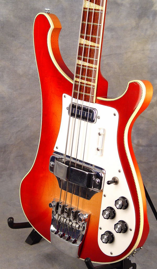 This very fine example is in excellent condition with original horseshoe bridge pickup, crushed pearl fretboard inlays and walnut headstock wings. Rickenbacker solidbody basses such as this 4001 deluxe model were produced in modest numbers in the mid-1960s. It is unusual to find one in such nice shape as this. With silver tolex OHSC in near mint condition.