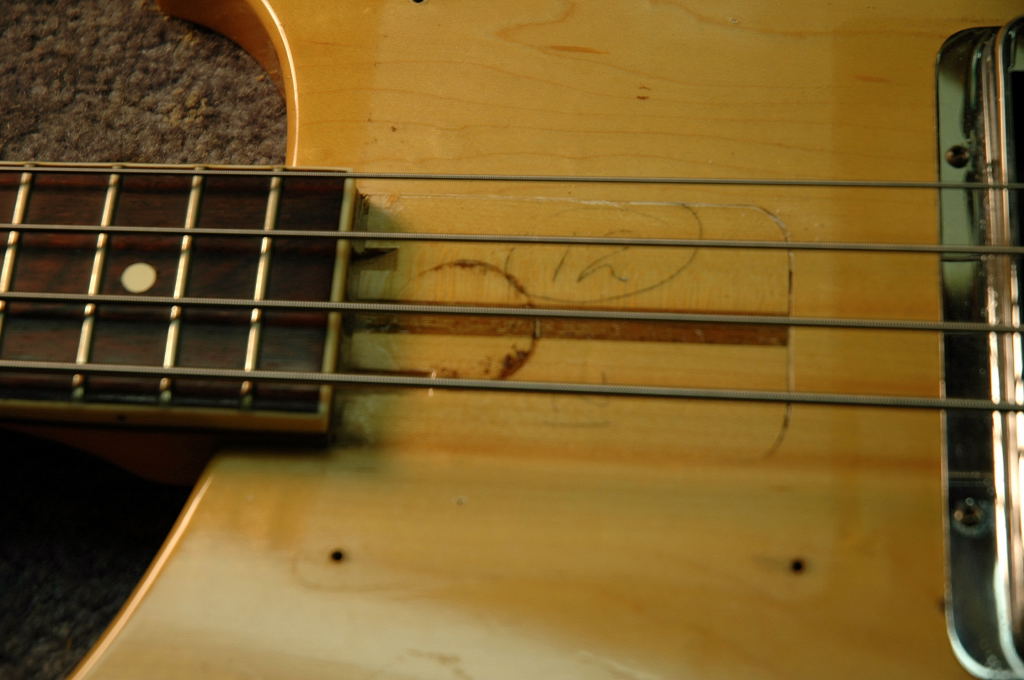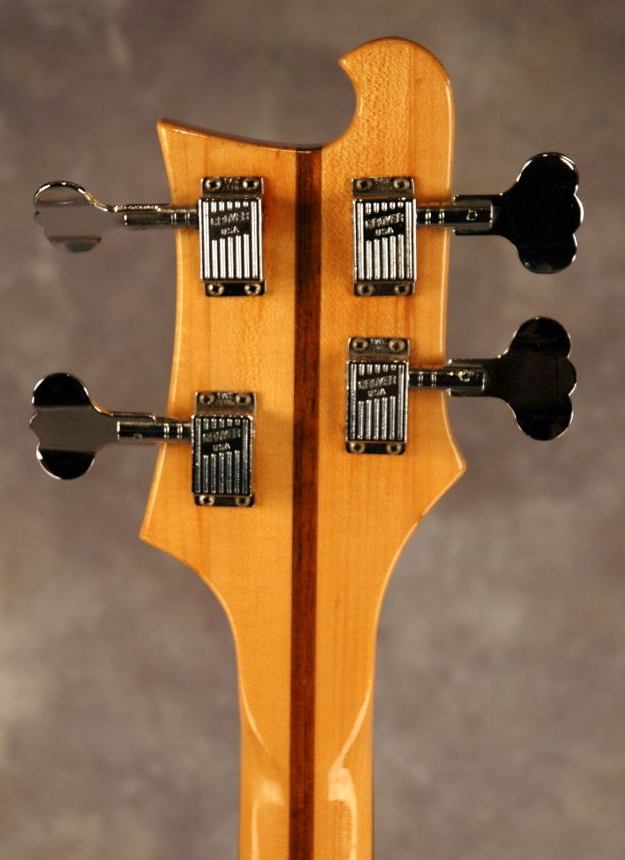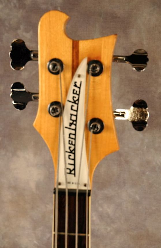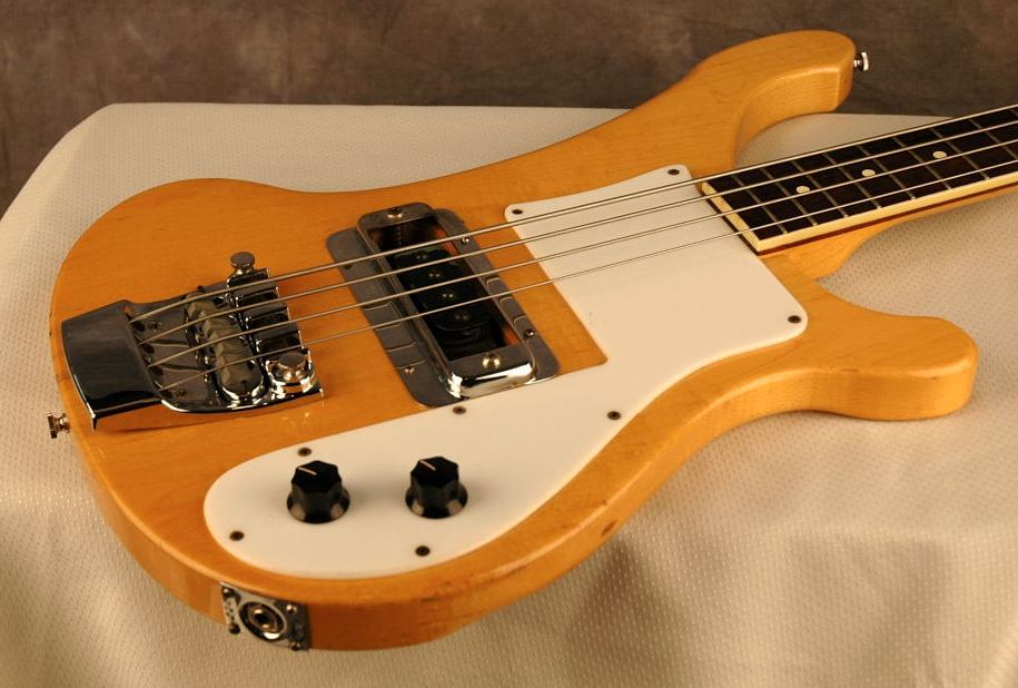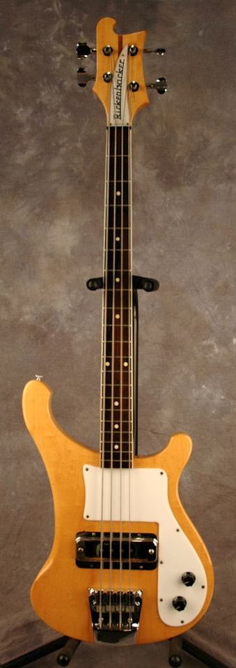 This early 1974 (serial # NA) bass guitar has an unusually dark fretboard with original white neck binding extending across the butt of the fretboard, a rare feature for Rickenbacker guitars, sometimes seen on the early 1974 4000 models. OHSC.
