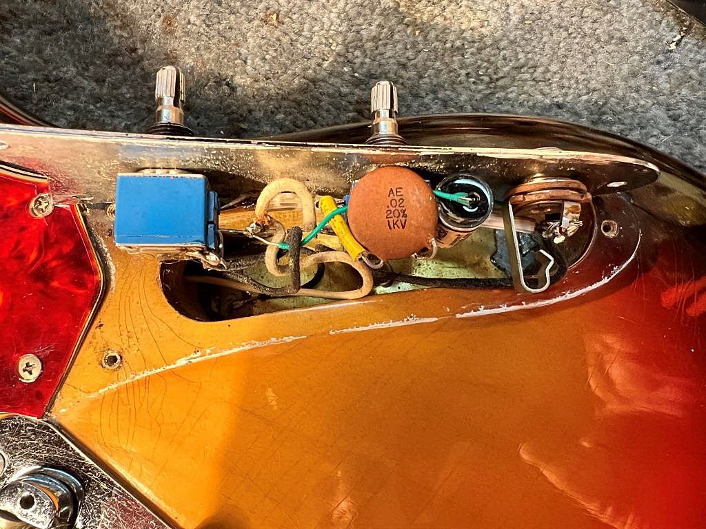 Fender Electric XII in Sunburst; this guitar shows playing wear and is fitted with changed wiring and pots. OHSC