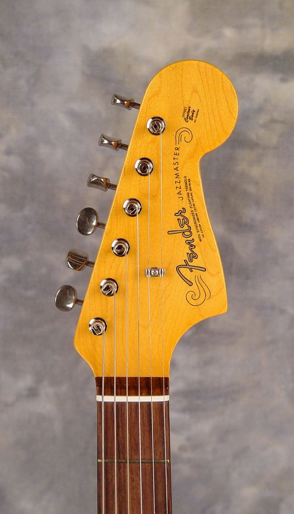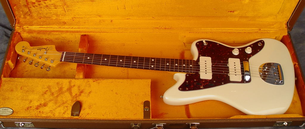 Fender Jazzmaster American Vintage Reissue (AMVRI) in Olympic White with plain headstock. OHSC