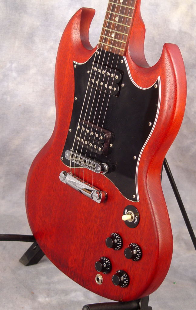 This Gibson SG Les Paul Standard is a reissue of an late '60s SG with stop tailpiece and a matte finish. Non-original HSC