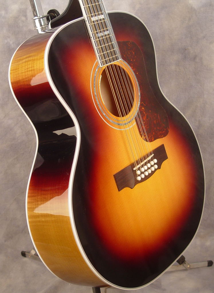 The F-512E is Guild's top-of-the-line acoustic 12-string, with Jumbo 17" body 4" thick with onboard electronics with an archtop back. Guild is known for superior acoustic 12-string guitars. Like new with OHSC