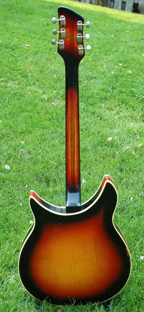 This guitar was likely a custom order, as the original finish is not a standard finish for this era but is very dark around the edges. The neck had been stripped of its finish when I acquired it and only the neck was refinished. All else is original. Later silver HSC.