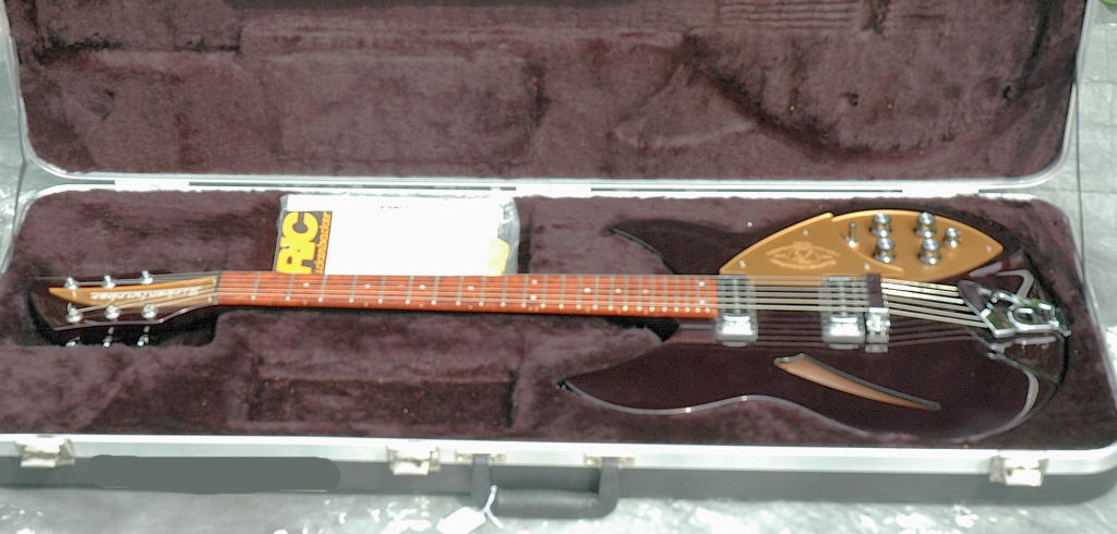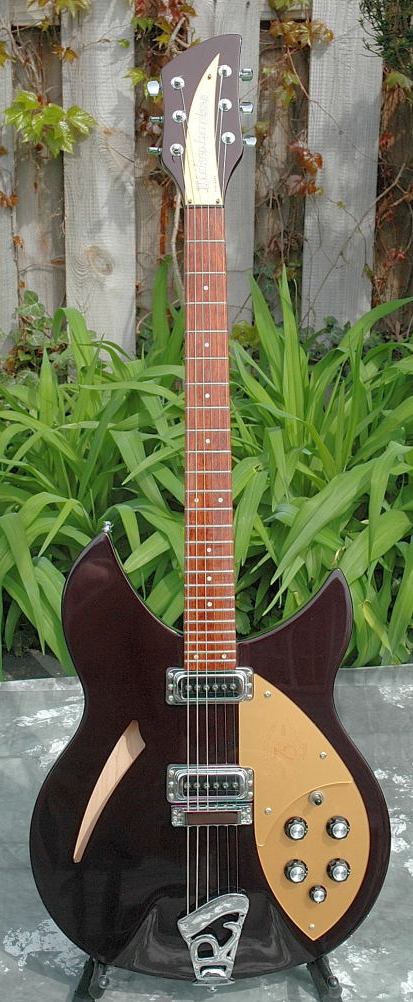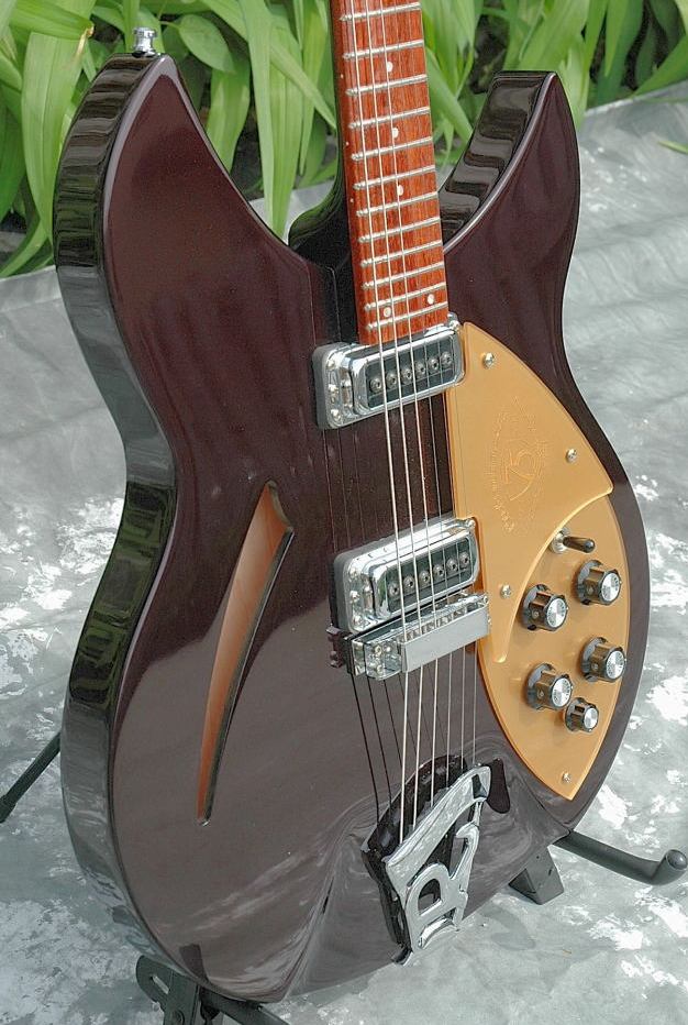 This model 330 is one of a series of guitars created by Rickenbacker for its 75th anniversary in 2006. Each of four models was produced in a limited quantity of 75 items. Features of this special edition include: special Dark Cherry Metallic finish; gold pickguards with laser-cut "75 Years: 1931-2006" logo; special truss rod cover in gold with laser-cut silver lettering. With OHSC