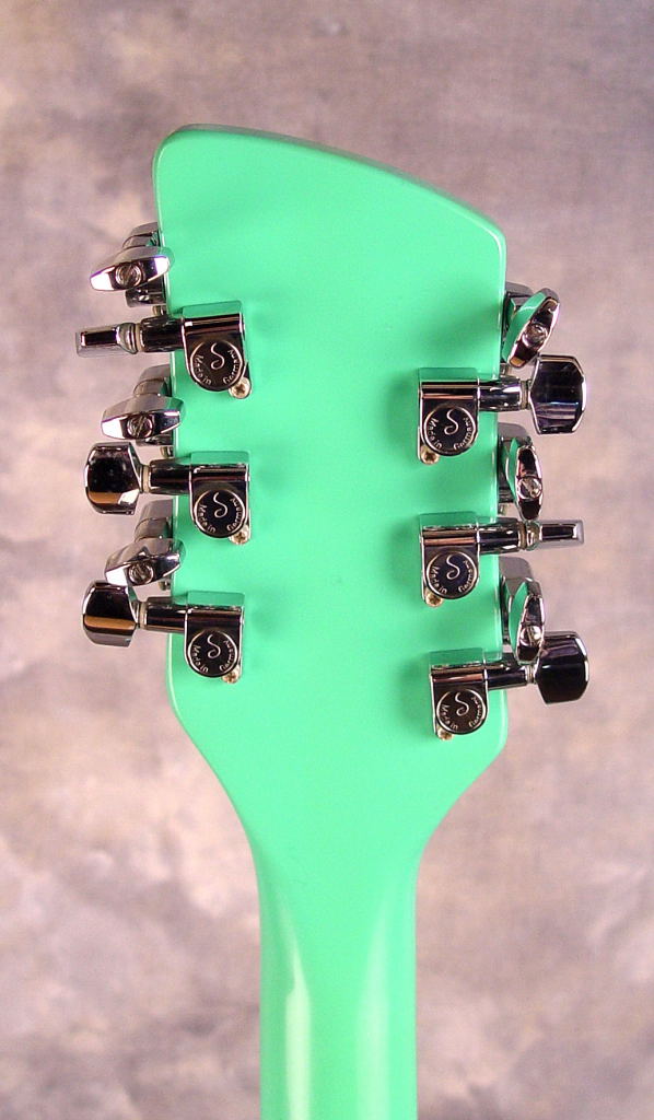 Rickenbacker model 360/12 in Sea Green, RIC Color of the Year for 2000. Sea Green was RIC's first Color of the Year, and models in this color are exceedingly rare. This one is exceptionally rare as it came equipped with factory toaster-top pickups. OHSC